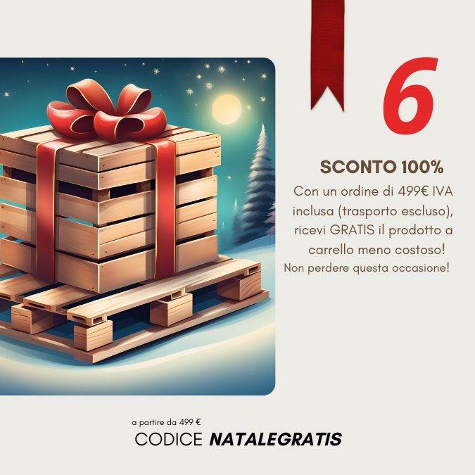 Ordine minimo 499€ iva inclusa - Spedizione esclusa. Scadenza 8 Gennaio ore 12