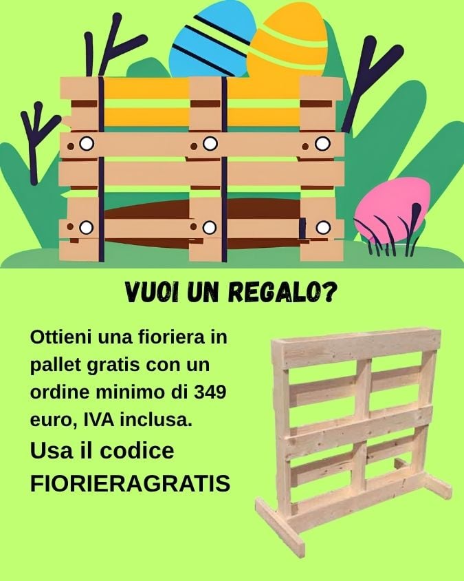 Non perdere questa incredibile offerta! Con un ordine di 349 euro hai la possibilità di ricevere una pallet fioriera in regalo utilizzando il codice sconto FIORIERAGRATIS entro le ore 12 del 8 Aprile 2026. Approfitta ora e rinnova il tuo giardino gratuitamente! Non lasciarti scappare questa opportunità unica, ordina subito!